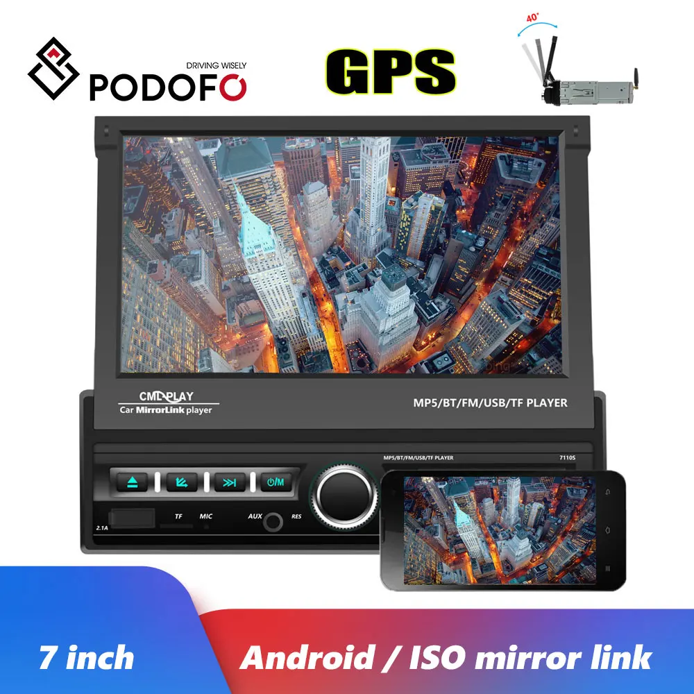 Podofo 1 Din 7'' Car Radios GPS Autoradio Android Mirror Link Car Multimedia Player Touch Screen Bl