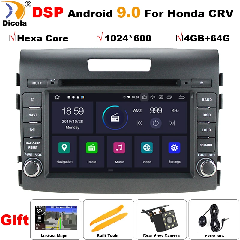 PX6 Android 9 4G+64G 7" HD Car dvd player GPS Navi For Honda CRV 2012-2014 IPS Capacitive screen 10