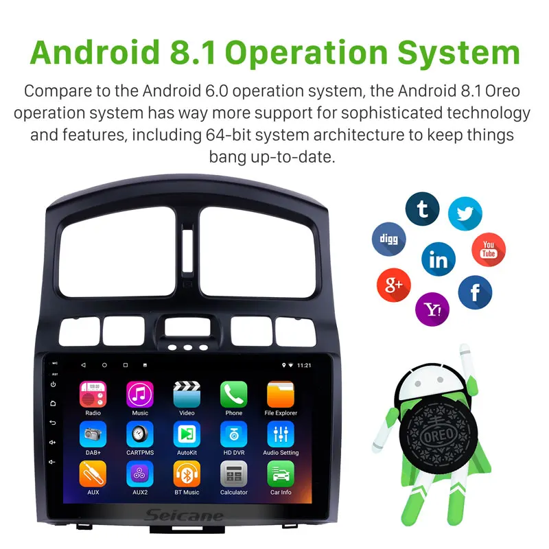 Seicane Car GPS Multimedia Player Radio For 2005 2006-2015 Hyundai Classic Santa Fe 9 Inch 8-core A