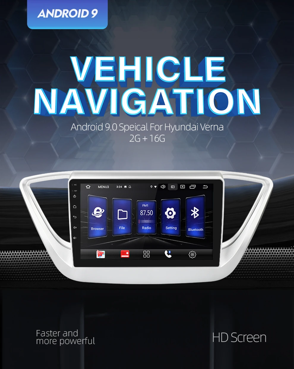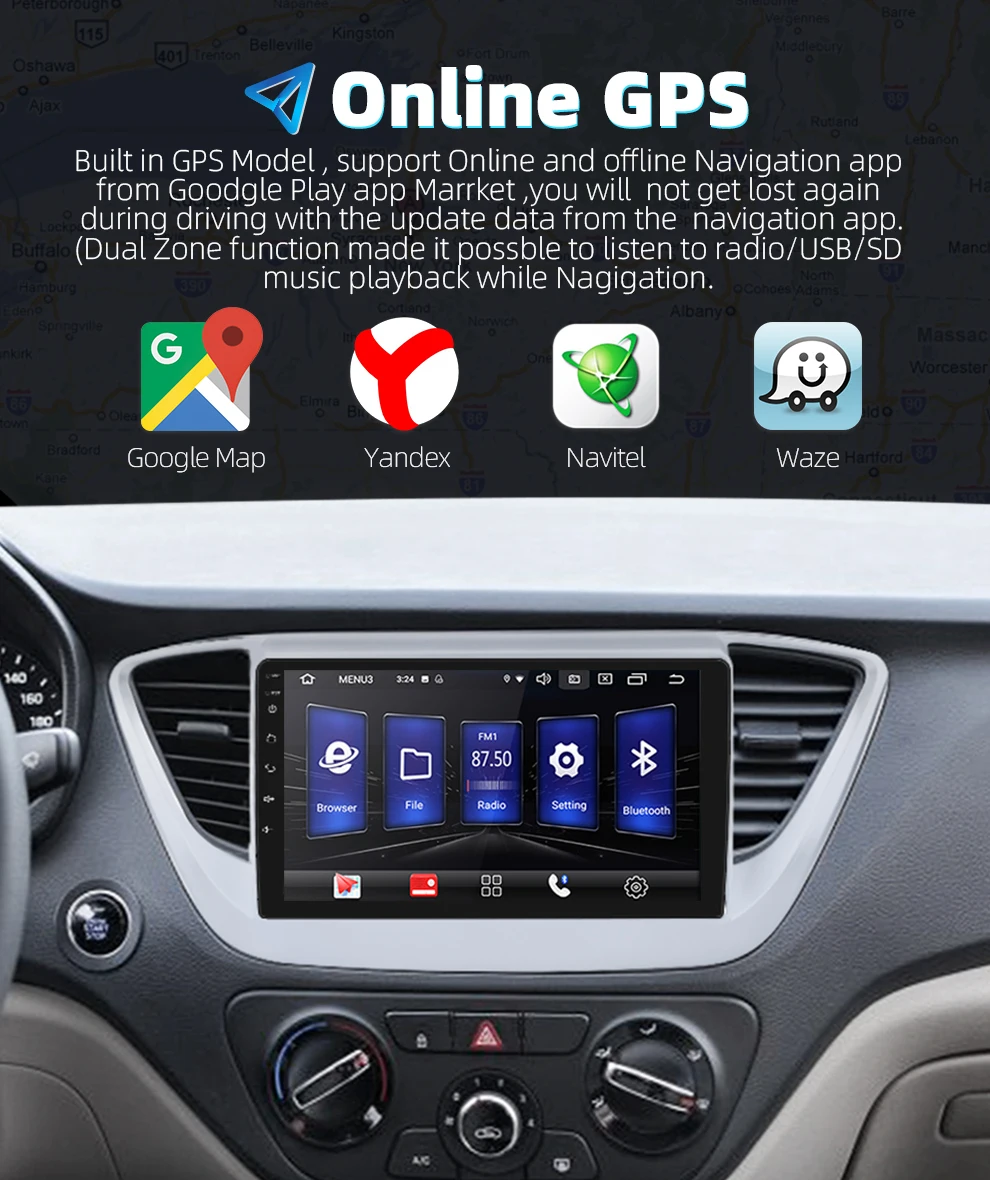 2G+16G Android 9.0 Car Radio Multimedia audio Player GPS Navigation 3G wifi IPS DSP For Hyundai Sol