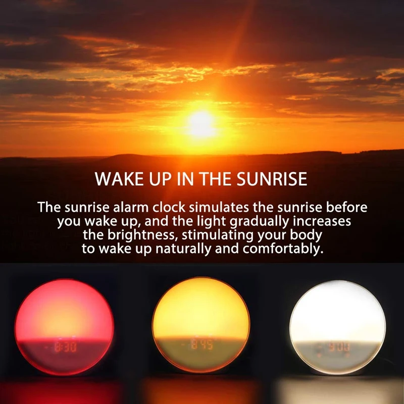 TOP Wake- Up Light Lbell Alarm Clock 8 Colored Sunrise Simulation & Sleep Aid Feature Dual Alarm Clock