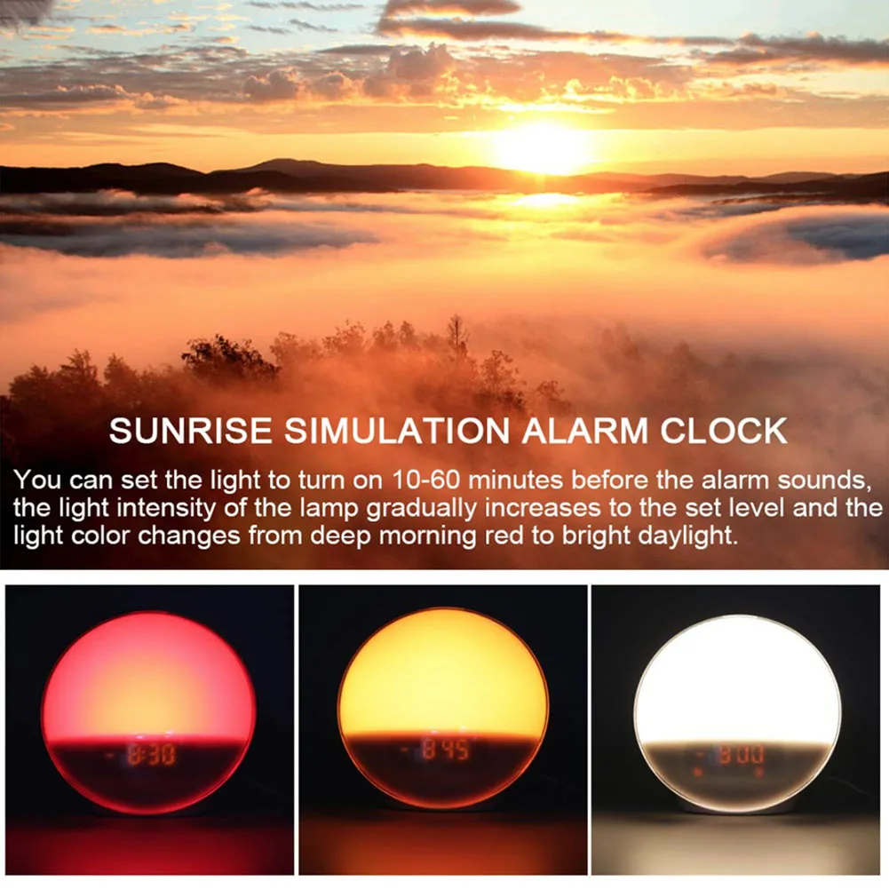 WIFI Voice Sound Alarm Clock LED Sunrise Simulation with FM Radio Snooze Clock TT-best